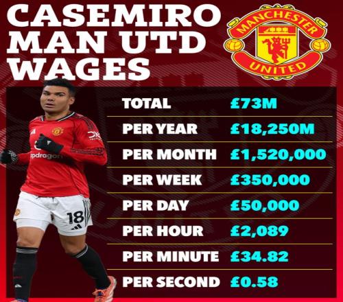 卡塞米罗一直是曼联队内收入最高的球员之一,「竞技网」的计算显示,他效力红魔4年,花费了俱乐部约1.19亿英镑。这笔钱花得值吗?不同人有不同的看法,但从老板拉爵的角度,肯定不会被视为划算的生意。